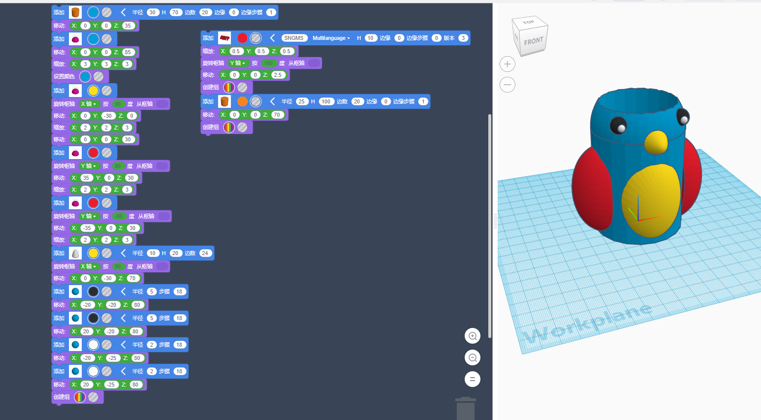活动竞赛 / 所有竞赛 / “Tinkercad Codeblocks”挑战赛-学生组 / 参赛作品《鹦鹉笔筒》